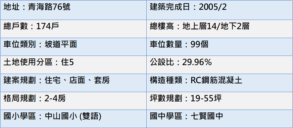- 位於青海商圈靠近中華路,離肯德基、路易莎、中華電信步行只需5分鐘,商家林立,機能非常豐富。