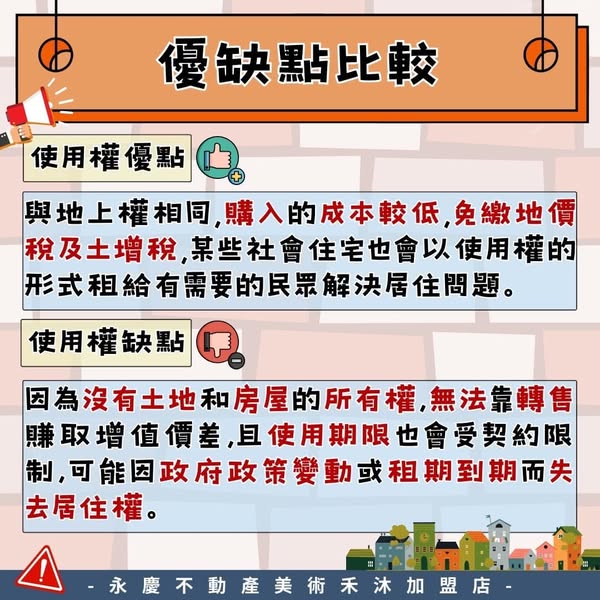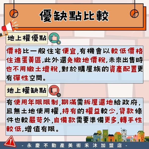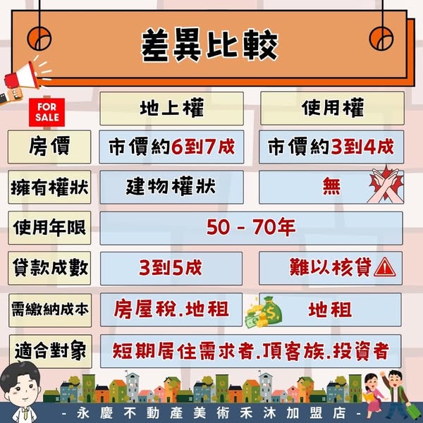 買房時常聽到地上權和使用權住宅,但兩者有什麼不同?提醒大家一定要注意房屋產權,別花大錢卻買到權益和預期不符的房子!一次帶你看所有眉角,避免踩坑✓
