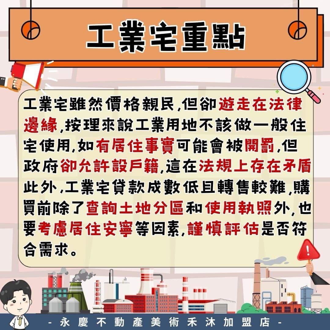 很多人以為工業宅價格便宜划算,但其實存在不少風險,從法律爭議到貸款限制以及居住的風險,這些都值得你了解清楚!購買前也務必查詢土地分區和使用執照,避免一失足成千古恨!