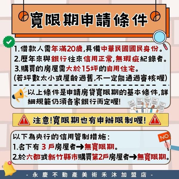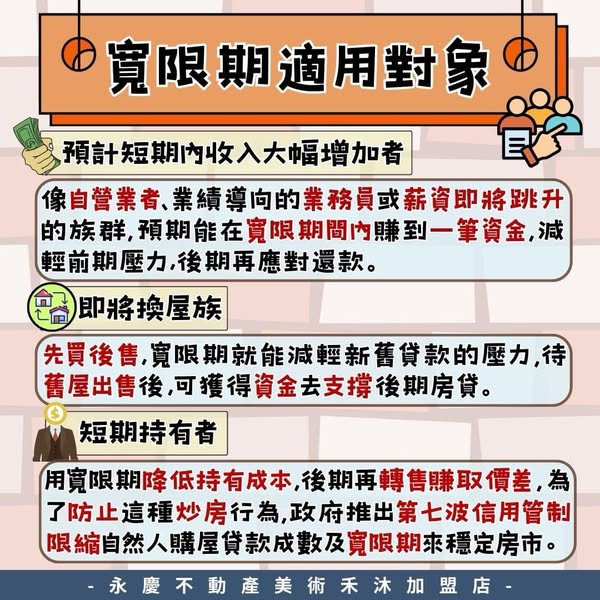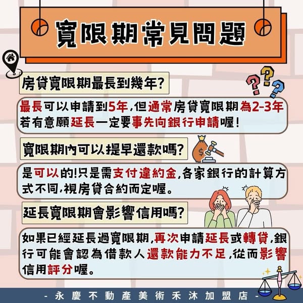 寬限期雖然能緩解前期的房貸壓力,但優缺點同時並存,如果財務規劃不夠周全,後期可能會面臨更大的還款壓力喔!大家一定要評估自身的還款能力再做決定,才不會吃虧✔︎