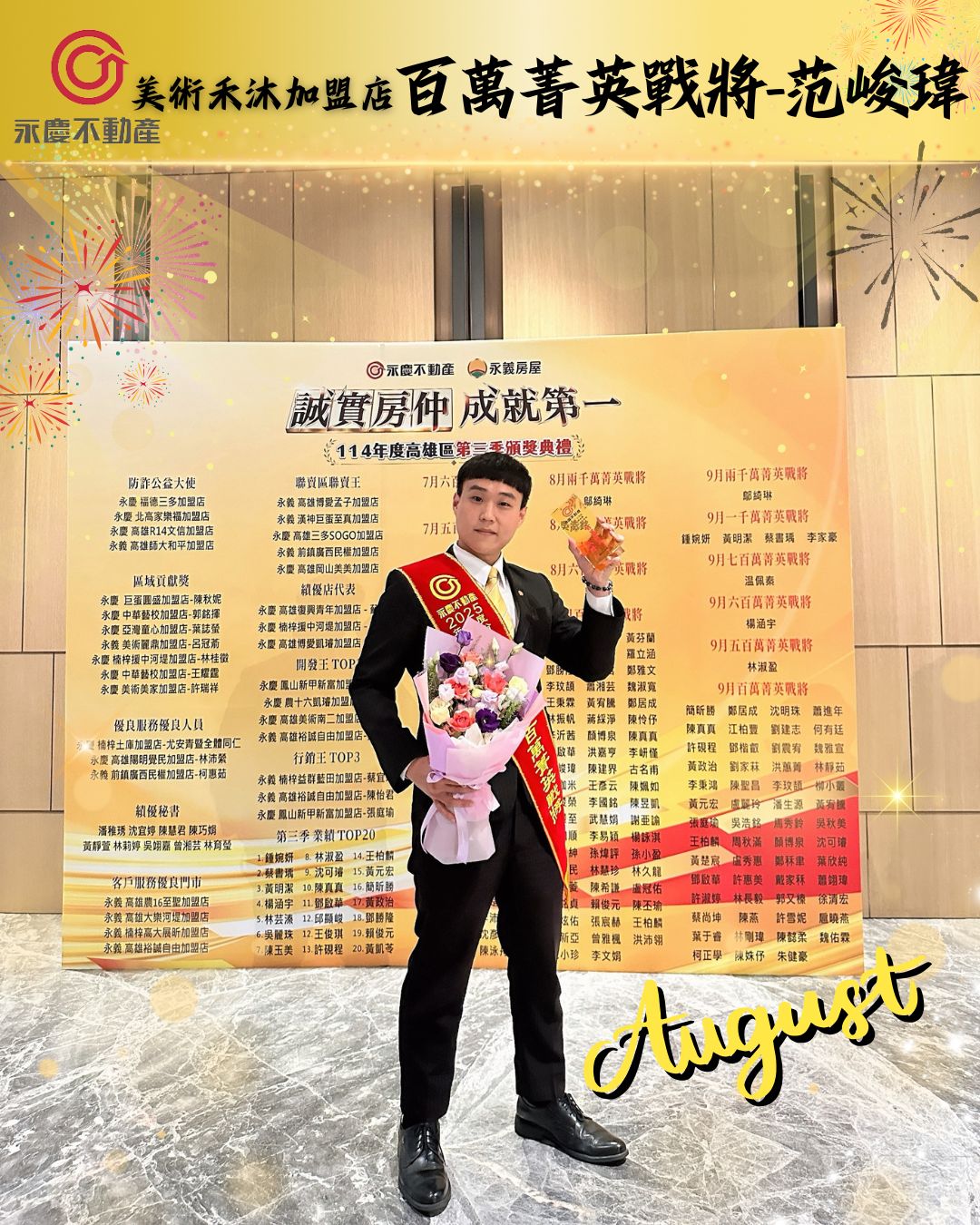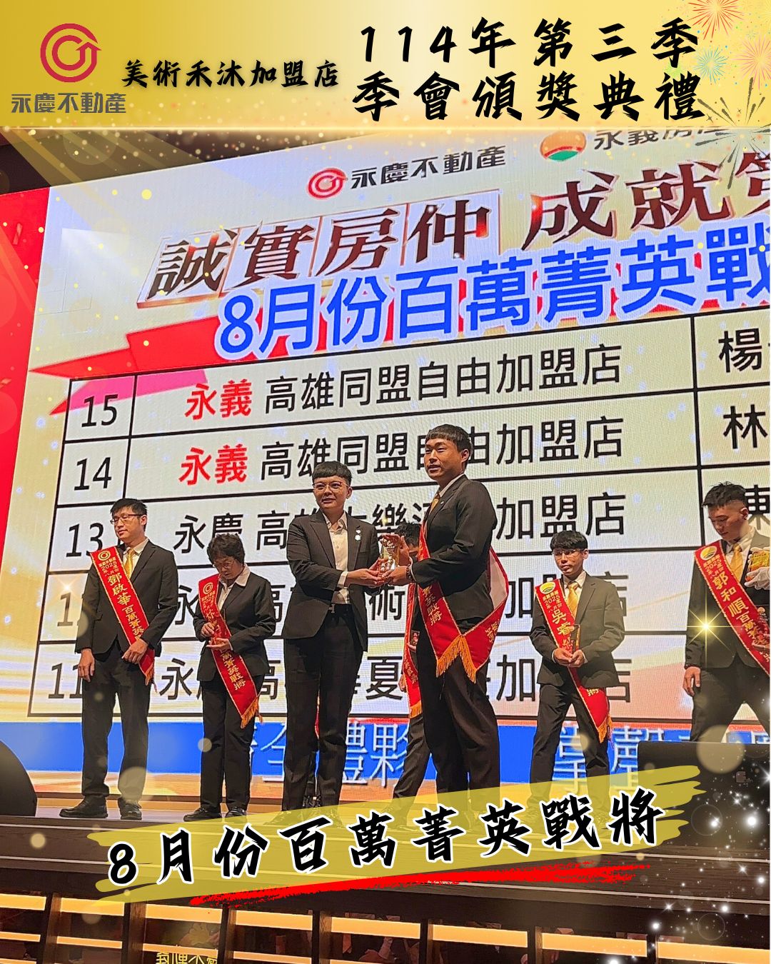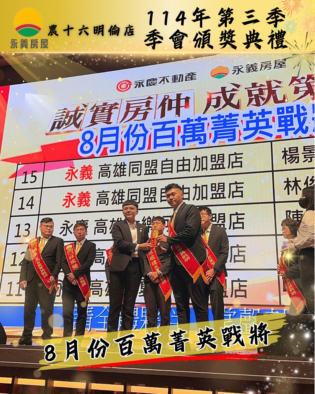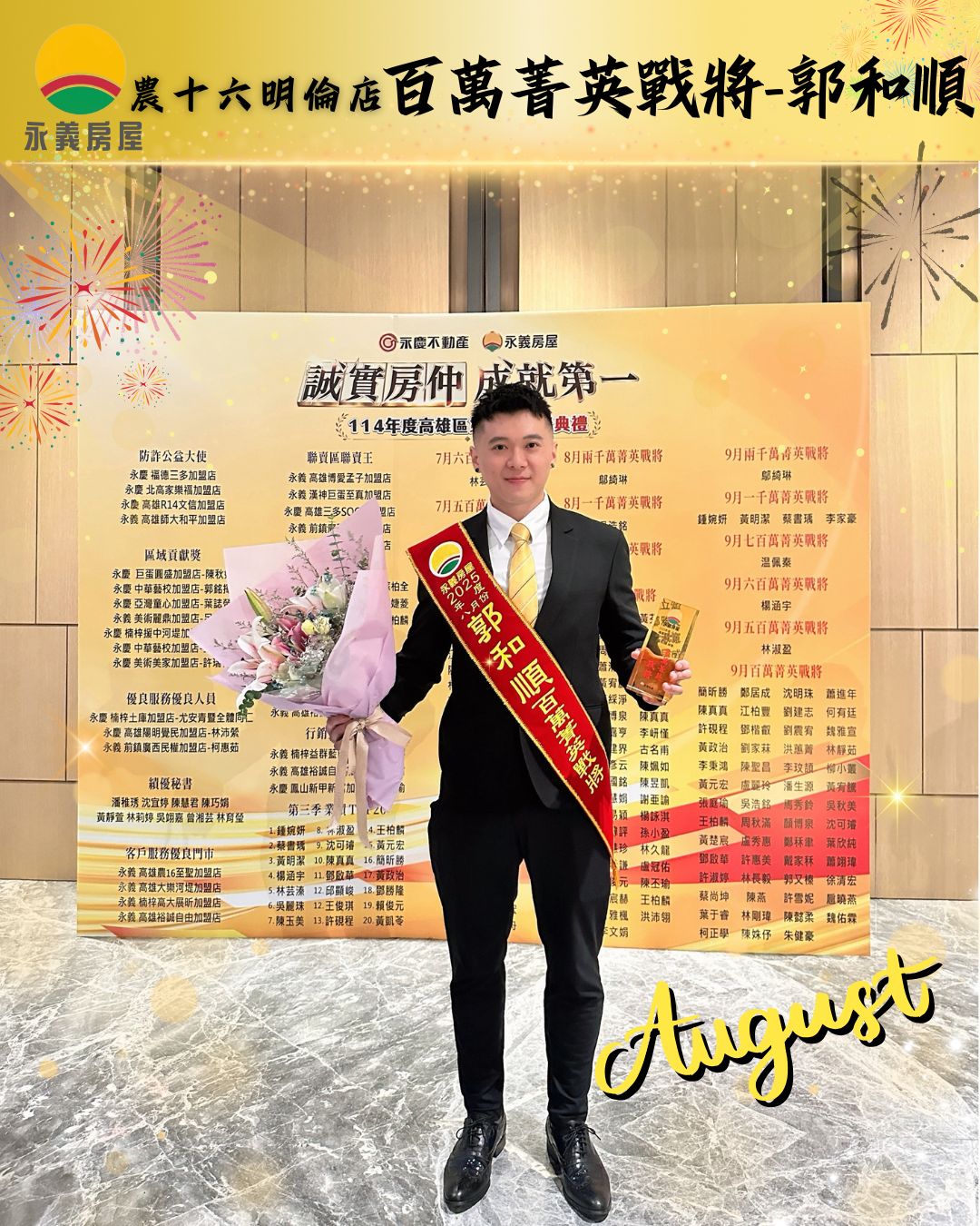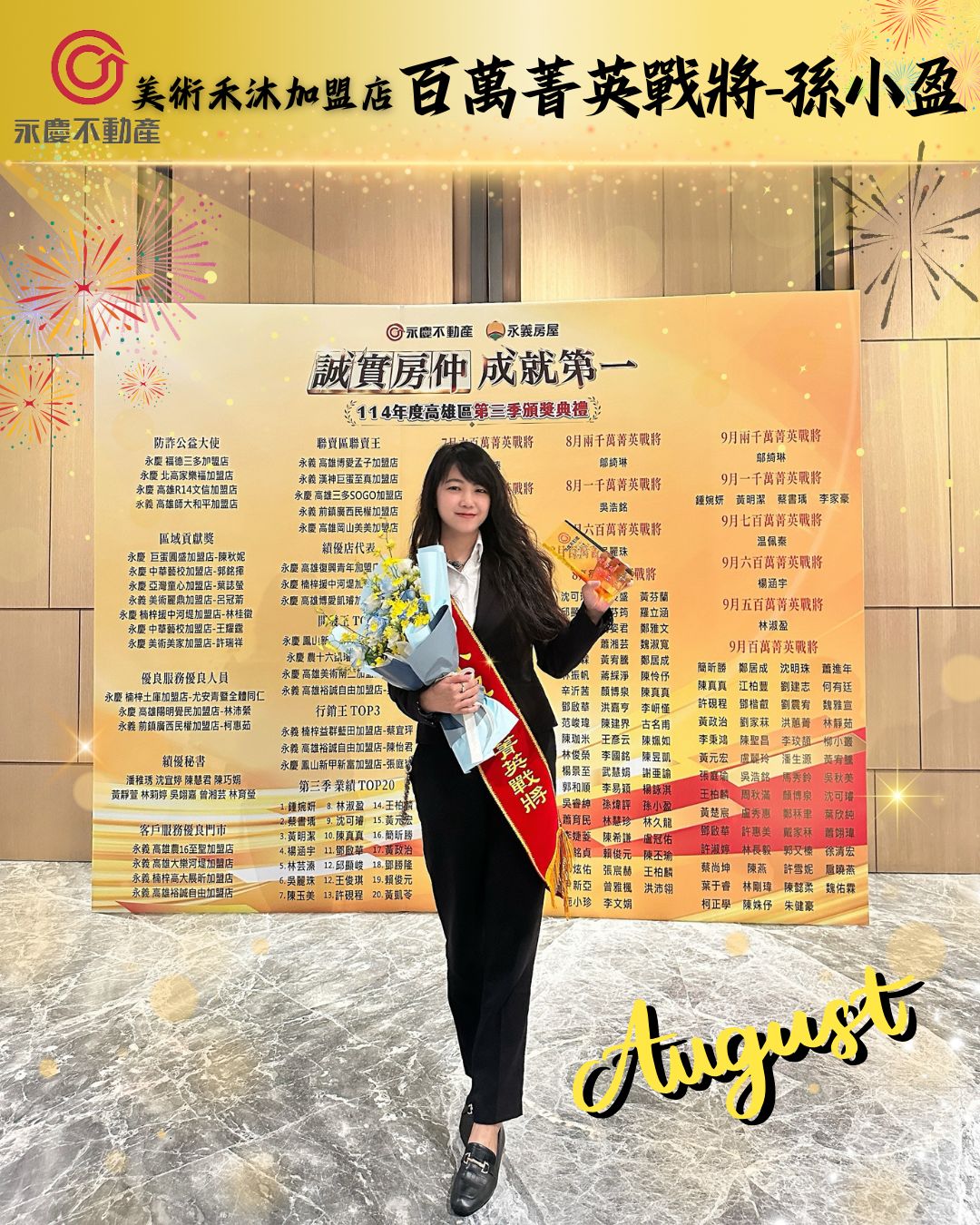 八月百萬菁英戰將♕ 孫小盈 店東✷ 范峻瑋 經理✷ 郭和順 經理✷ 禾鑫團隊齊心向前,把實力和努力畫成閃亮的光➹每一次上台都是突破的見證! 繼續並肩前行,登上屬於自己的榮耀殿堂♕